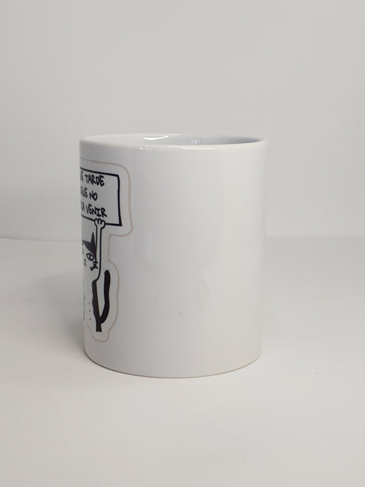 Taza divertida con frase “Llegué tarde porque no quería venir” – Regalo original