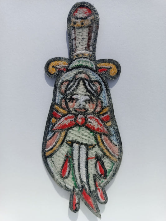 Parche Bordado Old School – Catwuška y Daga – Estilo Tattoo Tradicional