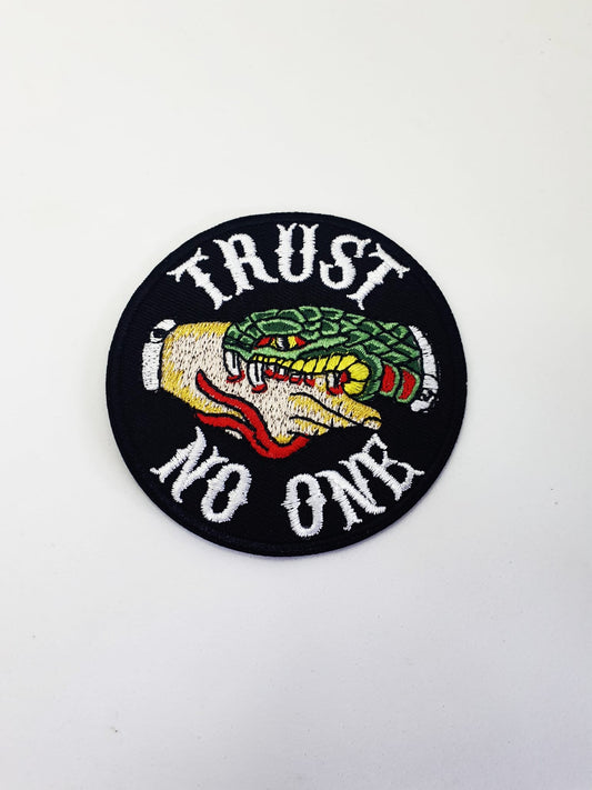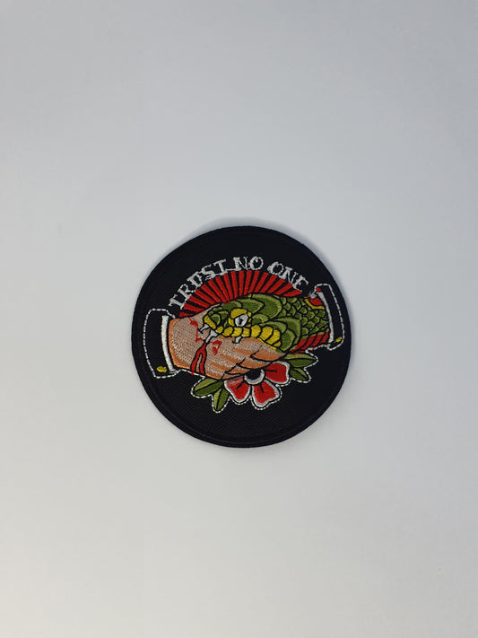 "Trust No One" Patch – Classic Old School Snake Tattoo